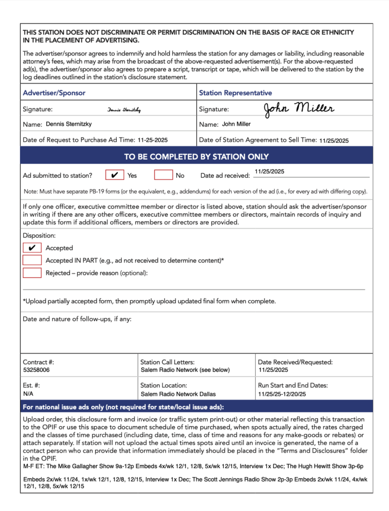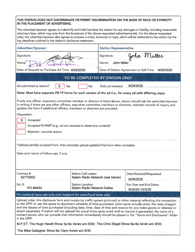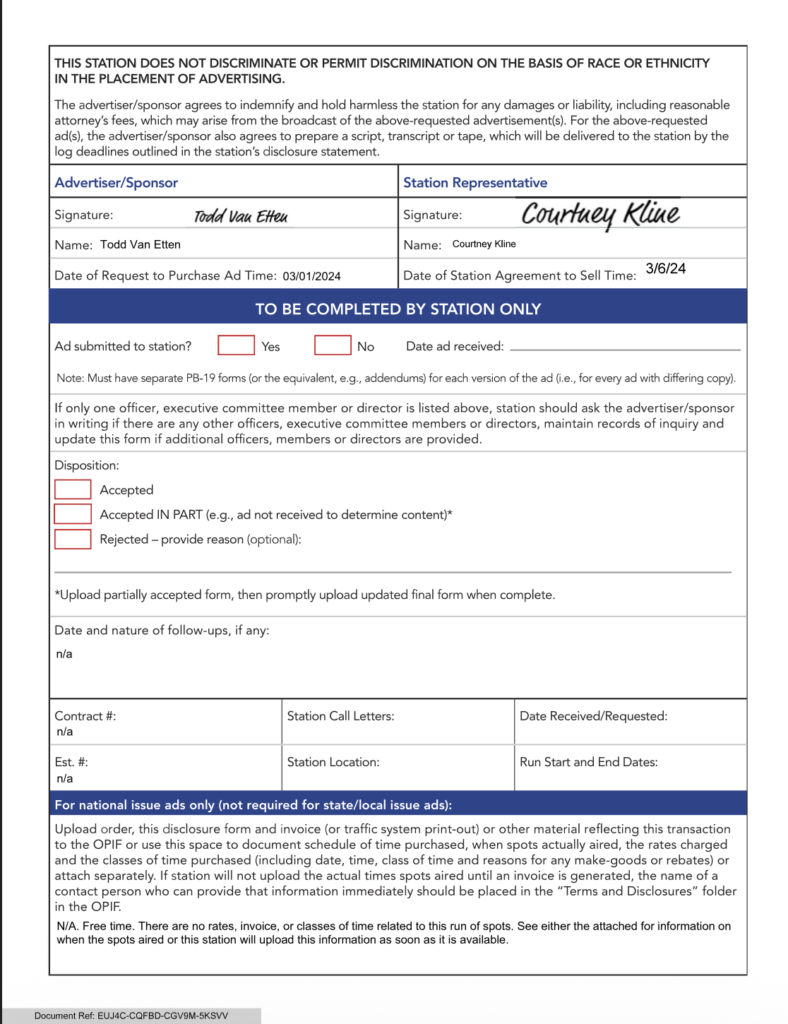 FCC Public Files DSCC IE 2024 NAB SignedDownloadNET210177.0 Electronic Payments Coalition – WWO NAB FormDownload5054509DownloadNAB MT RURAL VOTERSDownloadNET210177.0 Electronic Payments Coalition – WWO NAB FormDownloadNAB MT RURAL VOTERSDownload48263002 The Heritage Foundation NAB – 8.1.24Download47329002-JCN-NAB-Form-5-15.24DownloadNET210177.0-Electronic-Payments-Coalition-WWO-NAB-Form-1Download4692606-Stanley-M-Herzog-NAB-5.7.24Download46921002-EPC-NAB-4.18.24DownloadDSCC-IE-2024-NAB-Signed-1-1DownloadDSCC-IE-2024-NAB-Signed-1DownloadDSCC-IE-2024-NAB-Signed-2DownloadNET210177.0-Electronic-Payments-Coalition-WWO-NAB-Form-1DownloadNet210177.0-Electronic-Payments-Coalition-WWO-Order-_-TranscriptDownloadNET210177.0-Electronic-Payments-Coalition-WWO-NAB-FormDownloadAFP-Action-MT-NAB-2.20-2Download45816002-EPC-NAB-PB-19_NonCandidateAds-1.23.24DownloadNAB-Last-Best-Place-PAC-1DownloadNAB-Last-Best-Place-PACDownloadMore-Jobs-Less-Government-MT-NAB-12.11-Primary-1Download45206006-Stand-Together-Comm-AFP-NAB-PB-19-Issue-12.21.23-signedDownloadBest-of-America-PAC-Issue-NAB-44054002-9.11-9.26-9.7.23Download44769003-Electronic-Payment-Coalition-NAB-Issue-Nov-2023-10.30.23-signedDownload44878002-The-Libre-Initiative-NAB-Issue-11.6.23-signedDownloadNAB-Form-CCAGW-11102023-002-CombinedDownloadrevised-NAB-Form-CCAGW-11102023-DownloadNET209069.0-Council-for-Citizens-Against-Government-Waste-WWO-1Download
